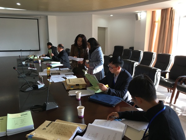 自评专家组第二工作组由蒋永文校长任组长,评估中心毕先均主任担任副组长,张绍宗、刘玲、王力新、陈敏、陈平、杨超等专家任组员,教务处及评估中心的相关教师担任工作人员。3月14日上午8:30分开始,工作组分四个小组交叉对化学化工学院本科教学进行审核评估,认真细致地开展了听课看课、审阅试卷和毕业论文(设计)、深入访谈师生、查阅试卷论文及支撑材料、检查教学实验场所及设施等一系列的自评估工作。下午15:30分,专家组第二工作组及学院全体评建组成员汇聚睿智二号楼330会议室,听取学院院长陈业高教授从学院迎接评估的准备情况和学院对“五个度”的认识与理解两个方面的汇报。