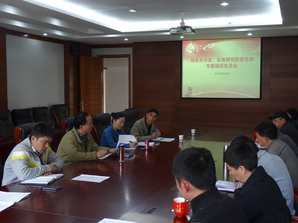 3月16日下午,校办、云南研究院党支部召开专题组织生活会民主评议党员,蒋永文校长以一名普通党员的身份参加了支部专题组织生活会。