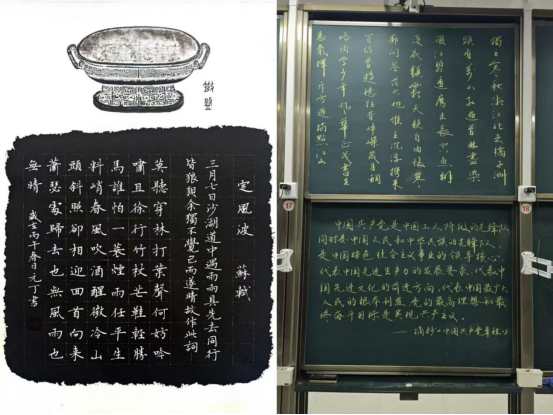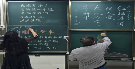 粉笔字赛场之上,“三尺讲台存岁月,一支粉笔写春秋”,选手们板书规范、字体端庄,部分作品融入彩色粉笔绘画,将文字美感与教学实用性巧妙融合,诠释课堂板书的艺术价值。