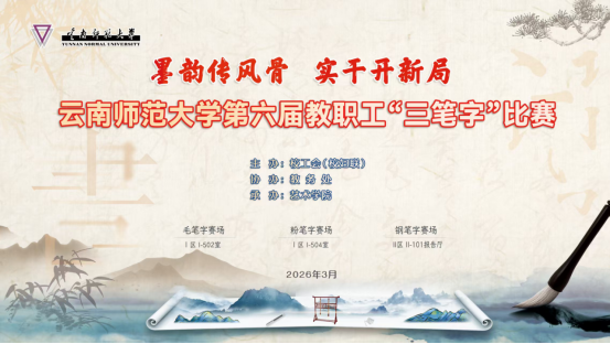 为弘扬中华优秀传统文化,传承西南联大精神,展现我校教职工实干风貌,进一步提升教职工书写技能,为学校“十五五”开局之年注入文化动力,3月26日,由校工会(校妇联)、教务处主办,艺术学院协办的第六届教职工“三笔字”比赛在呈贡校区顺利举行。各单位遴选的选手齐聚赛场,以笔为媒,共赴笔墨之约。